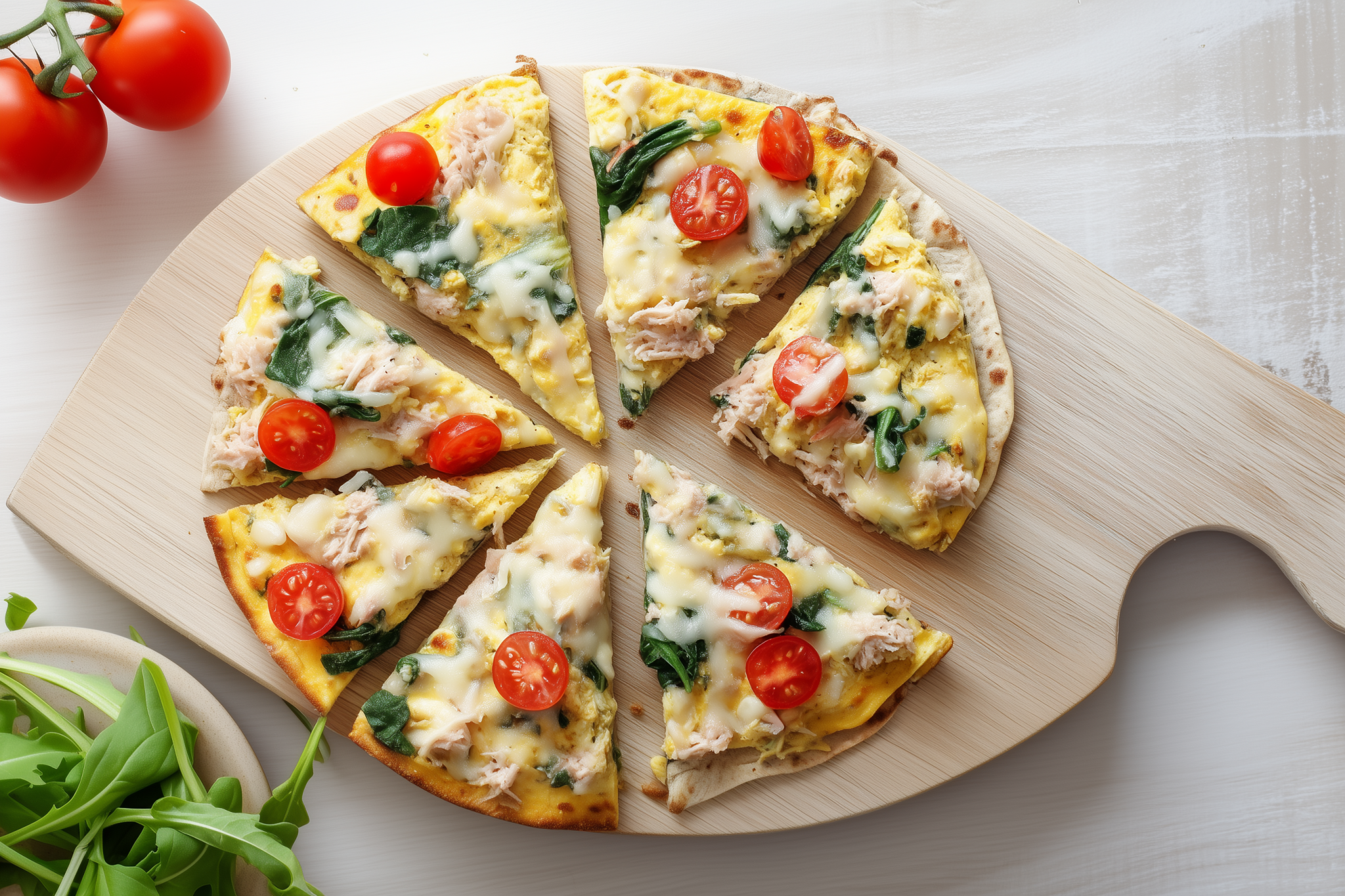 מוסיפים גם גבינה צהובה מגורדת, עגבניות שרי ועלי תרד ומכסים את המחבת ל 3-5 דקות עד שמוכן. בתאבון!