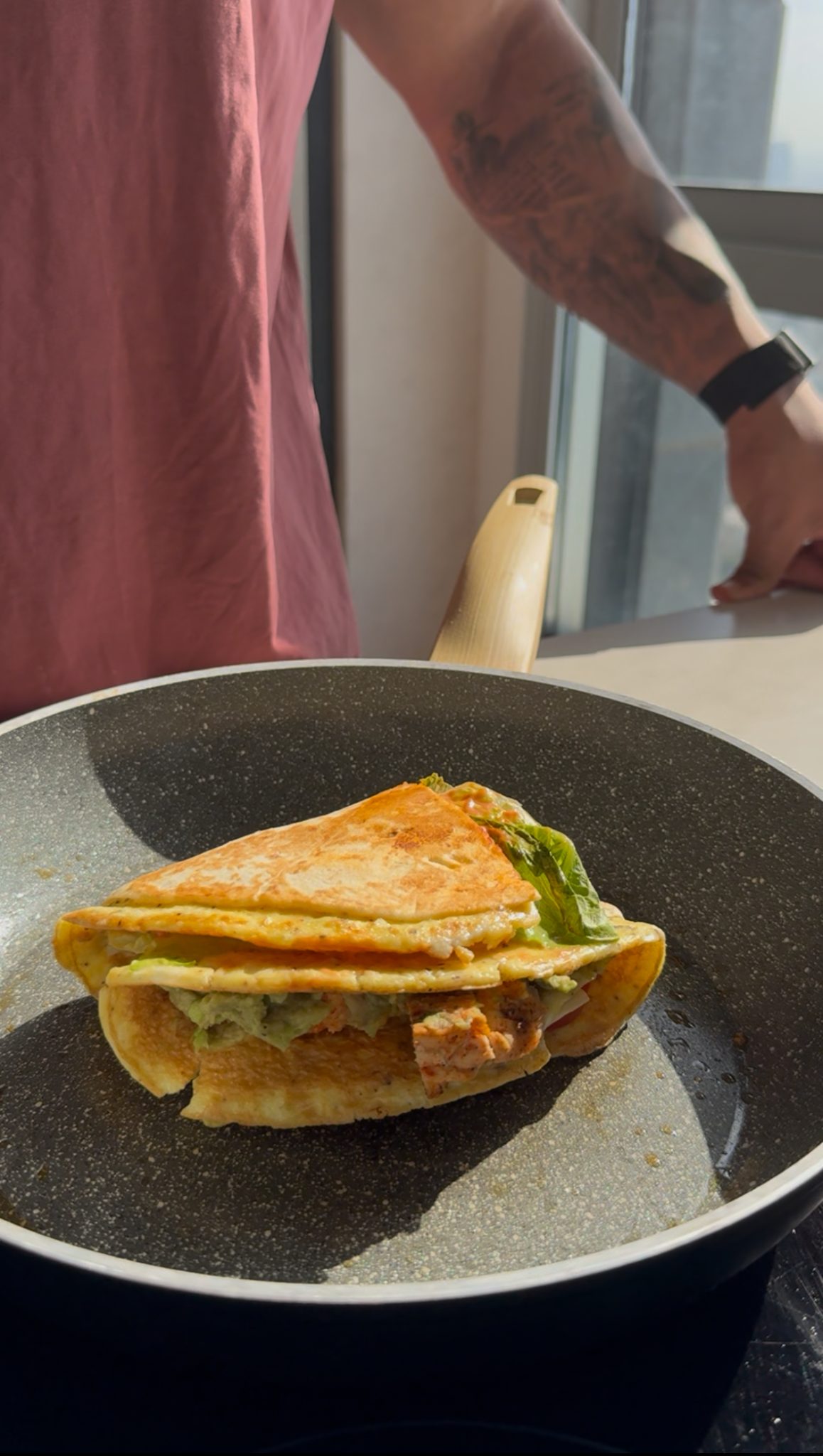 מוסיפים מעל טורטיה ונותנים לביצים להתבשל.