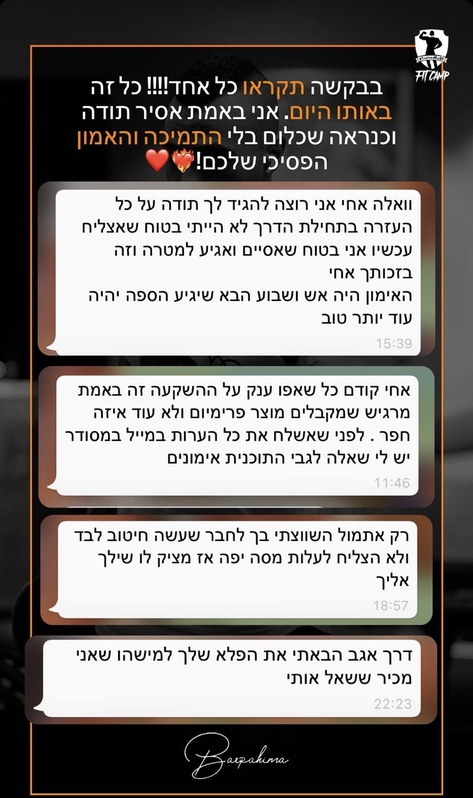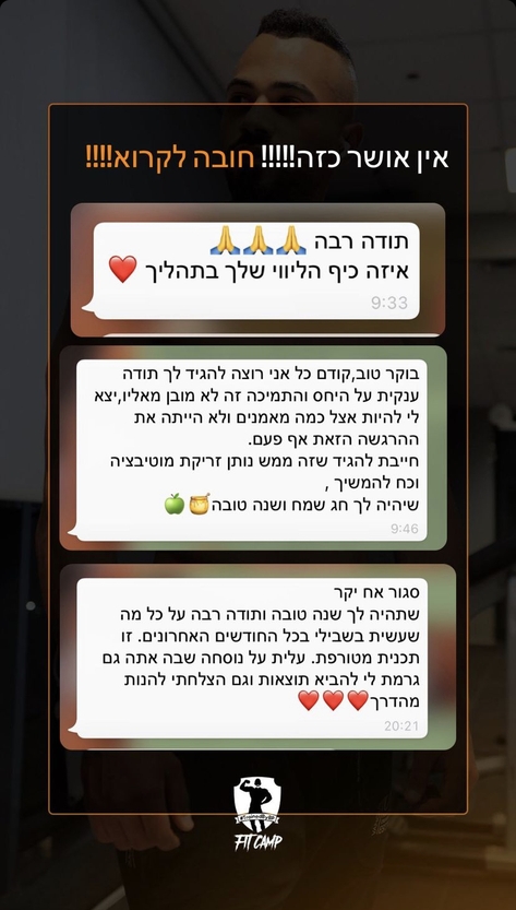 התוכנית כבר עזרה למאות אנשים לרדת באחוזי השומן, להתחטב, לעלות במסת השריר ולסגל לעצמם אורח חיים בריא.